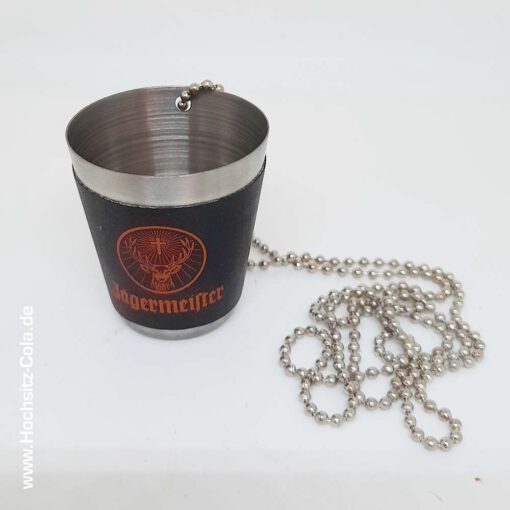 Sehr altes Glas mit aufgedrucktem Jägermeister Schriftzug auf dem Fuß. Inhalt 2cl.