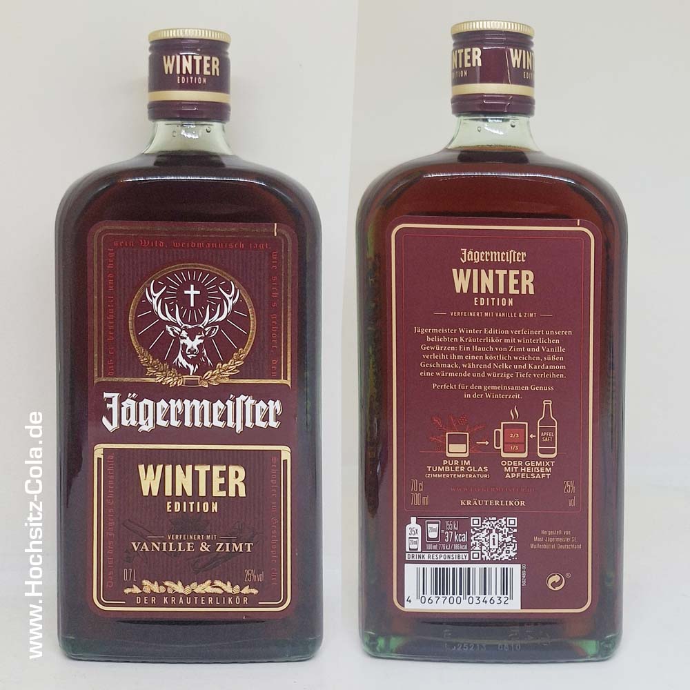 Seit Oktober 2025 Im Laden. Es handelt sich um den Relaunch von Jägermeister Winterkräuter. Im Gegensatz zum normalen Jägermeister wird empfohlen die Winter Edition bei Zimmertemperatur zu trinken. Durch den niedrigeren Alkoholgehalt (Winter 25%, „normaler“ Jägermeister 38%) könnte er in einer Tap Machine (-18°C) auch evtl. einfrieren.