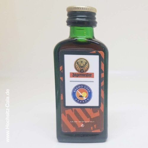 Beinhaltet zwei 0,04l Flaschen Jägermeister, Firmierung AG, zwei kleine Longdrink Gläser und eine Dose Schweppes. Nach meinen Infos ca. 1990/91.